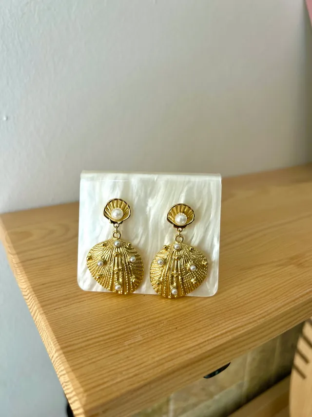 İncili deniz kabuğu küpe